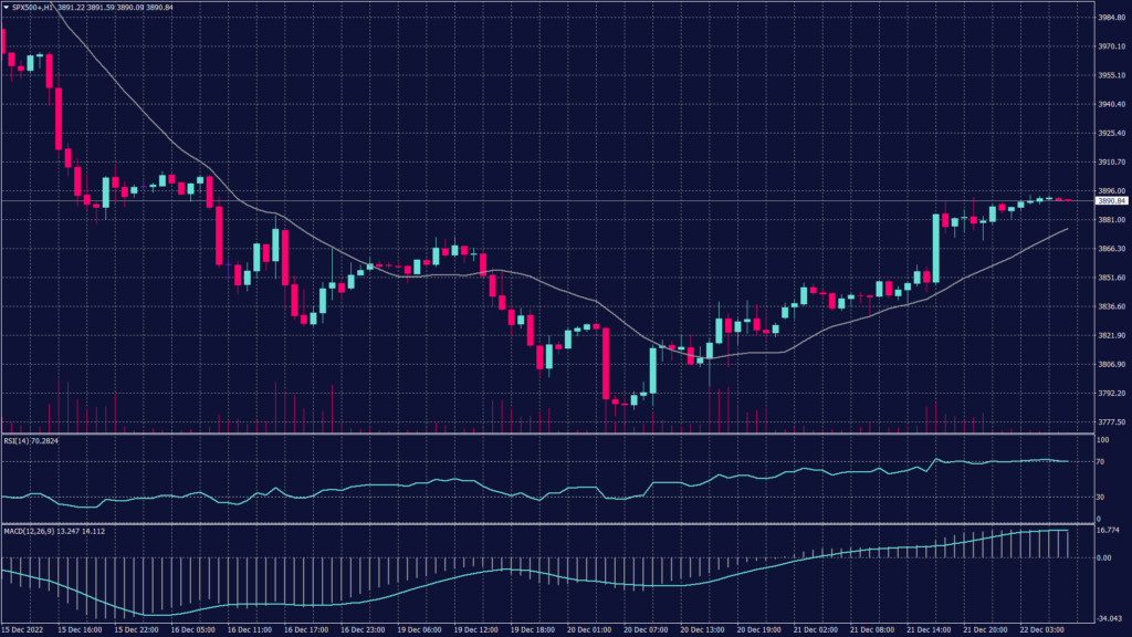 جاءت التحركات الليلية عقب جلسة إيجابية أخرى للأسهم. خلال التعاملات الاعتيادية يوم الأربعاء، ارتفع مؤشر داو جونز 526.74 نقطة، في حين ارتفع مؤشر S&P 500 وناسداك المركب بنسبة 1.49٪ و1.54٪ على التوالي. يظهر SPX500 اتجاه صعودي طفيف على الرسم البياني لكل ساعة لكن الرسم البياني اليومي يدحض ذلك ويؤكد استمرار الاتجاه الهبوطي. ستكون هناك تقلبات بين 3,820 و3,920 لكن الاتجاه العام يظل سلبياً.