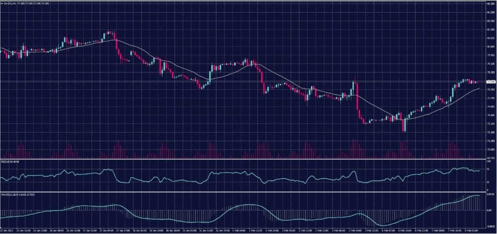 كما ارتفعت العقود الآجلة لخام غرب تكساس الوسيط الأميركي 13 سنتاً، أو 0.2%، إلى 77.27 دولار للبرميل، بعد أن قفزت 4.1% في الجلسة السابقة. ومما قدم دعماً للسوق، أن بيانات المخزون الأسبوعية الصادرة عن معهد البترول الأمريكي أظهرت أن مخزونات الخام تراجعت بنحو 2.2 مليون برميل في الأسبوع المنتهي في الثالث من فبراير.