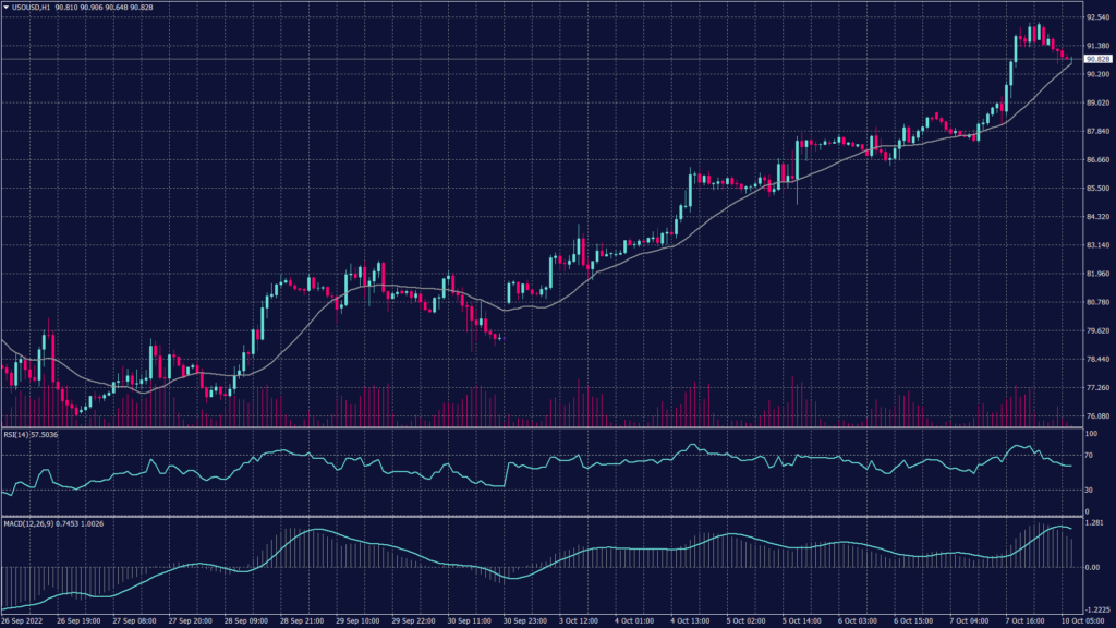 بقيت العقود الفورية لخام غرب تكساس الوسيط داخل القناة اليومية الهابطة على الرغم من وصولها إلى أعلى مستوى لها منذ منتصف سبتمبر. لاختراق الاتجاه الصعودي، يجب أن تغلق أسعار خام غرب تكساس الوسيط اليوم بالقرب من 91.35 دولار للبرميل. مع ذلك، يظهر مؤشر القوة النسبية لمدة 14 يوماً تباطؤاً في الزخم وإمكانية استمرار الاتجاه الهبوطي. في غضون ذلك، تُظهر قراءات MACD نمط تداول أفقي.