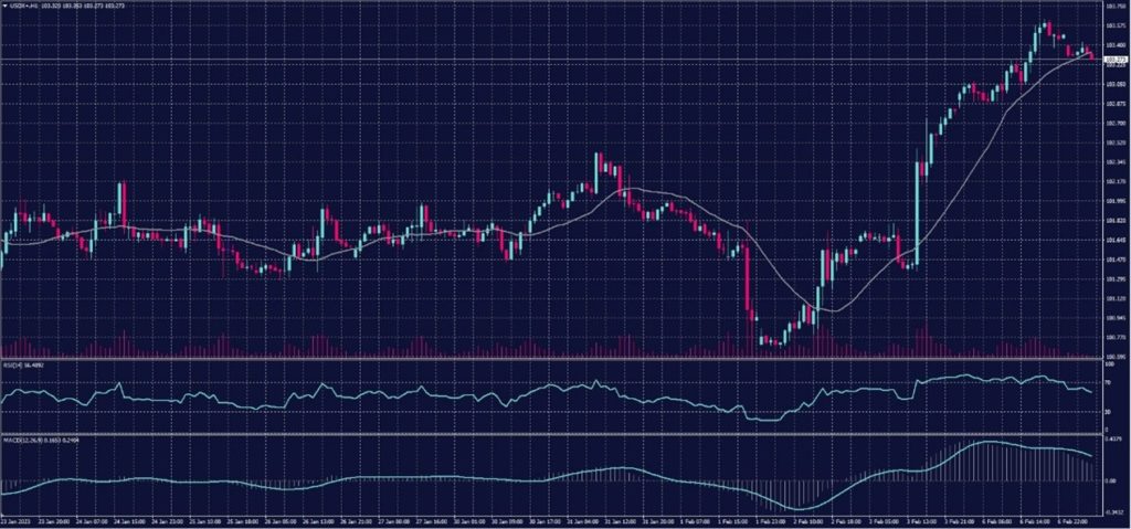 قراءات الفنية ايجابية، استمرار التقاطع الايجابي على المتوسطات المتحركة (20،55) مع دعم صعودي بمؤشرات الزخم ليستقر مؤشر الدولار عند نقطته المحورية عند 103.30