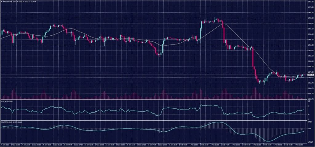 وفنيا يحاول الذهب التماسك عند مستوياته المهمه 1872 دولار تقريبا بتقلبات سعرية تتراوح بين ال1860 وال1880 دولار الى الان.