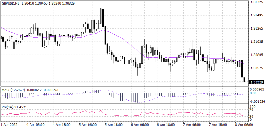 من الإطار الزمني اليومي، فإن الاتجاه العام للجنيه الإسترليني هبوطي. مع ذلك، من الإطار الزمني لكل ساعة، يبدو أن الجنيه الإسترليني مقابل الدولار الأميركي يتحرك أفقياً بعد الاختراق في الاتجاه الهبوطي. يقع مؤشر القوة النسبية RSI وMACD داخل خط الوسط، مما يدل على أن السعر من المرجح أن يستمر في التحرك أفقياً.