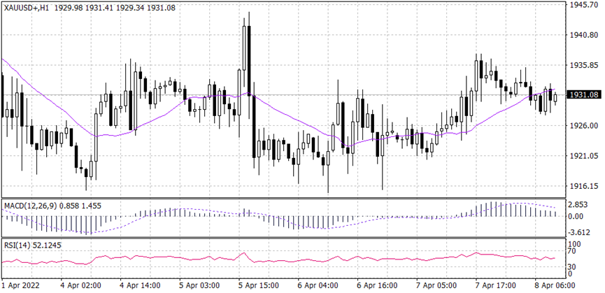 من نظرة عامة على السعر في الإطار الزمني اليومي، يتحرك سعر الذهب في التداولات الفورية أفقياً بعد تباطؤ الاتجاه الصعودي. وبالمثل، من الإطار الزمني لكل ساعة، يتحرك السعر أيضًا أفقياً حيث يتحرك المتوسط المتحرك لفترة 20 شمعة جنباً إلى جنب مع مستويات السعر الحالية. يشير كلا من مؤشر القوة النسبية RSI وMACD إلى نمط غير حاسم لإتجاه للسعر.