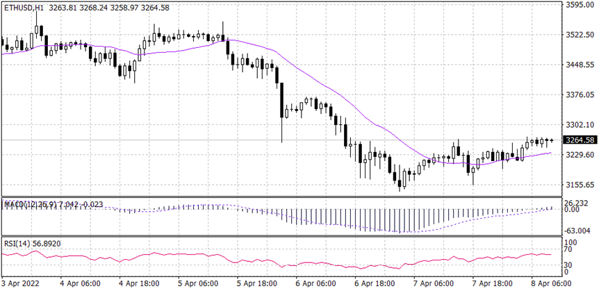 من النظرة العامة على السعر للإيثيريوم، يبدو الاتجاه العام من الإطار الزمني اليومي صعوديًا. وبالمثل، شكل السعر في إطار الساعة مثلثاً صاعداً يشير إلى زخم في الاتجاه الصعودي. يؤكد مؤشر القوة النسبية إلى حركة محتملة للسعر في الاتجاه الصعودي.