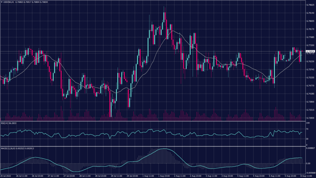 The pair hit a resistance at 6.7700 and was moving below it during the early trades but it is likely to penetrate it to continue the uptrend. The pair remains positive on both the hourly and daily charts. Meanwhile, the technical indicators show neutral signals.