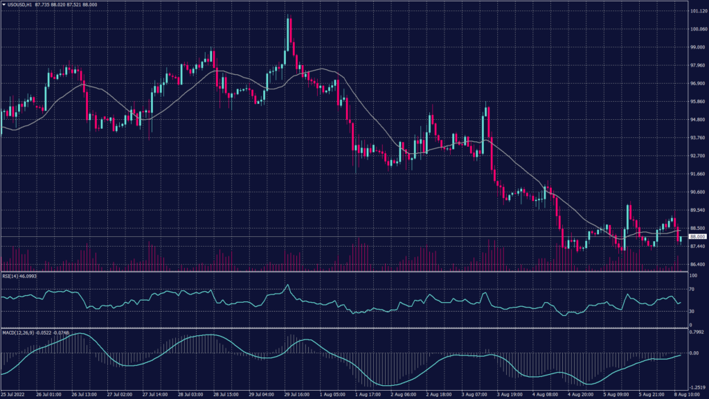 WTI is also trading lower and moving downward due to the lower demand and high sell-off below $89.50 per barrel. However, WTI is trading at the support of 87.50 but indicates a high probability of breaking below towards $85 a barrel unless the sell-off pressure was met with buying force.