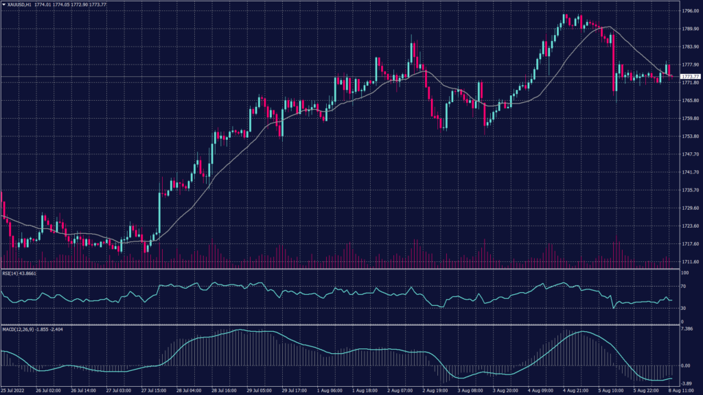 Technical indicators signal an intense fluctuation between 1,770 and 1,778 but both RSI and MACD support the theory of further decline below 1,770.