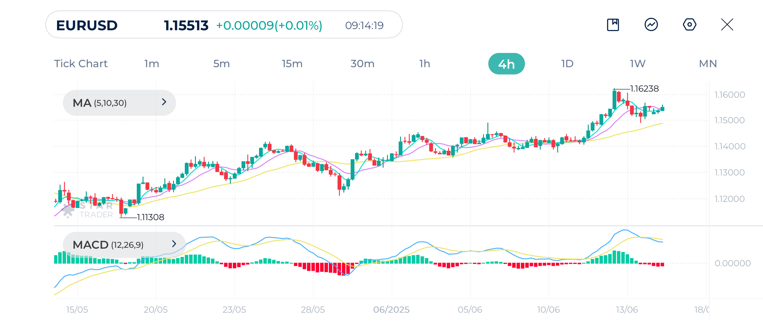 EURUSD shows a strong upward trend with higher highs and higher lows on the 4H chart, indicating short term uptrend. Price remains above the 30-period moving average, which is sloping upward, indicating buyers are still in control.