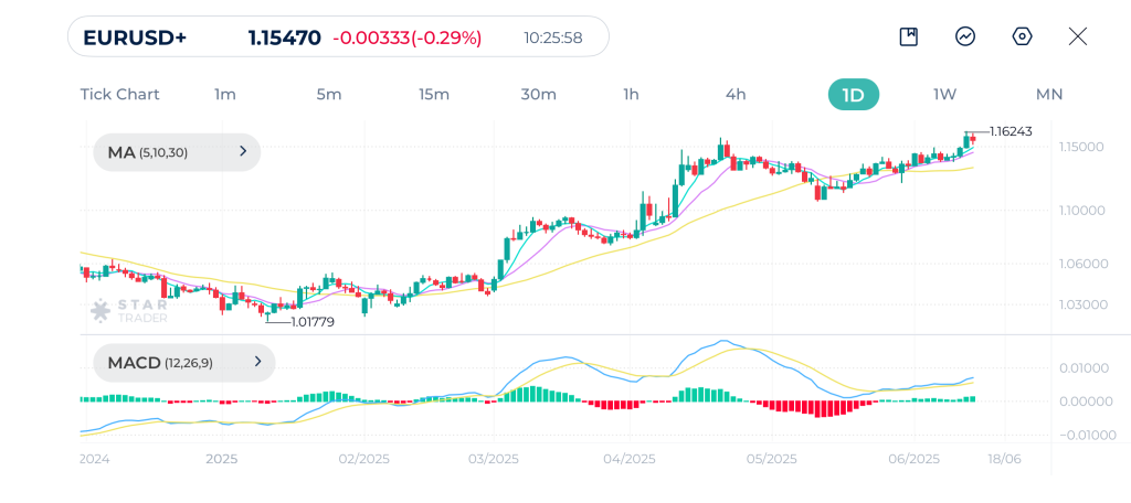 EURUSD is still showing strength above 1.1450-1.1500 range, which indicates bullish momentum. Price is being supported by the dynamic support levels represented by MA(5), MA(10), and MA(30).