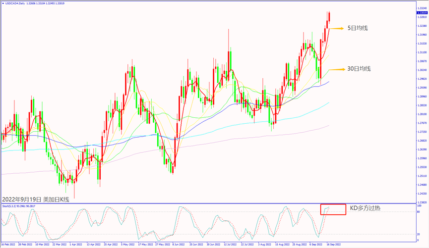 日级别线图,连续上涨KD多方过热,一旦跌破5日均线,可能回测30日均线。