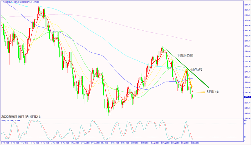 日级别线图,倒V反转,5日均线反压,可能延续跌势。