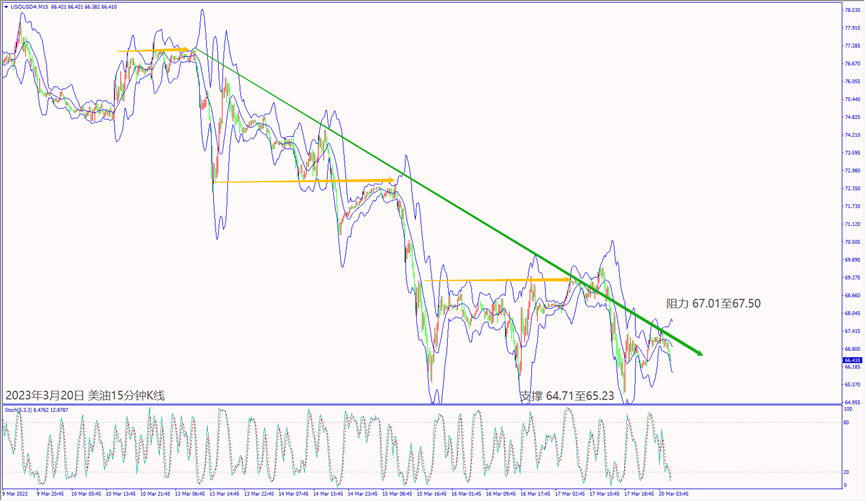 上周五(17日)欧洲央行官员对瑞信问题示警,利淡欧洲股指下跌,拖累美股走跌。晚间美国公布经济数据好坏参半,市场担忧美国第一银行恐冲击银行系统,利淡道琼斯和纳指扩大下跌近2%。瑞信问题和美国公布经济数据利淡欧美股指下跌,拖累美油价格从当日高点反转下跌约6%。晚间俄罗斯总统普京和玻利维亚总统进行了通话,可能利好俄罗斯持续对乌的军事行动,避险资金回补美油带动价格涨至67美元附近震荡。