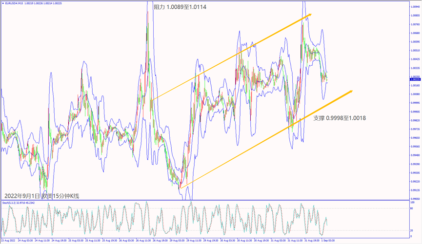 昨天(31日)进入秋天后欧盟受天燃气短缺冲击经济,造成欧美和镑美皆跌逾75个点,推升美元冲高至109.10附近整理,带动美加上涨约70个点。晚间美国公布小非农数据不佳造成美元指数反转下跌逾80个点,带动欧美反转上涨超百点。随后美国公布芝加哥PMI利好、以及美联储梅斯特暗指9月加息75个基点、利好美元数反弹至108.60附近整理。