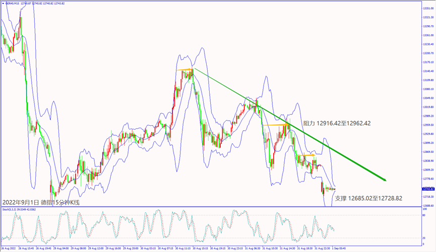 昨天(31日)受到欧盟缺乏天然气恐冲击经济,以及美国小非农数据不佳,造成欧美股指皆下跌逾1%。预期今天(1日)欧元区公布制造业数据大都利好,德指若突破小时布林带中轨12,803,建议可短多操作。预期今天美国公布经济数据好坏参半,纳指冲不过小时布林带上轨线12,306,建议可短空操作。