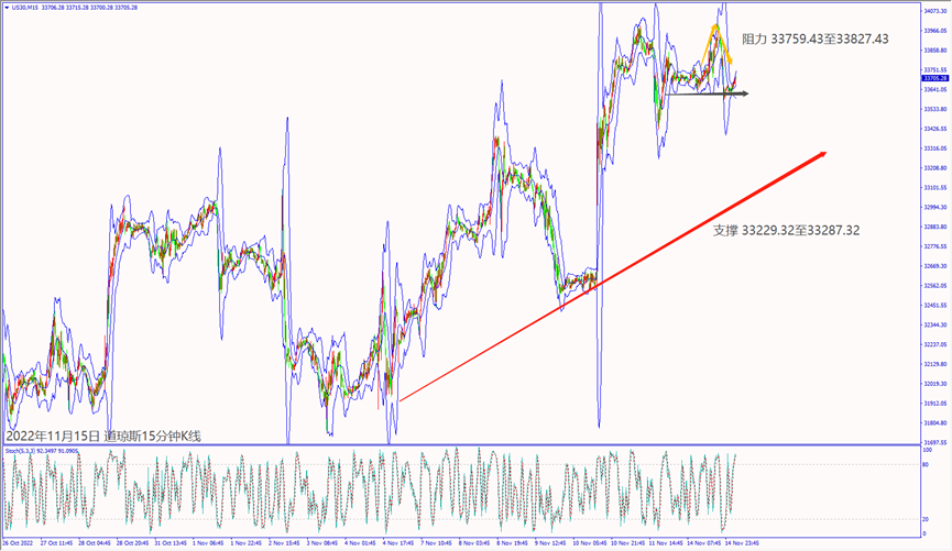 今天(15日)清晨美国参议院多数党领袖对期内解决债务上限问题示警,造成道琼斯和纳指反转下跌逾1%。预期今天欧元区公布第三季度GDP利好,德指若突破小时布林带上轨线14,346,建议可短多操作。预期今天美国公布制造业数据不佳,道琼斯若掼破5日均线33,490,建议可短空操作。