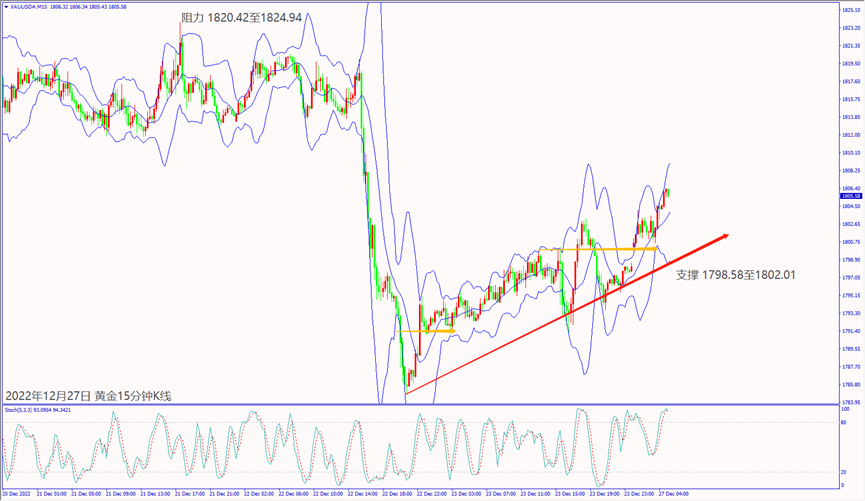 日级别线图,近期在5日均线附近盘整,守住该均线,有望延续涨势;15分钟K线,短线区间震荡,盘整顶部若突破,有机会挑战前高阻力。