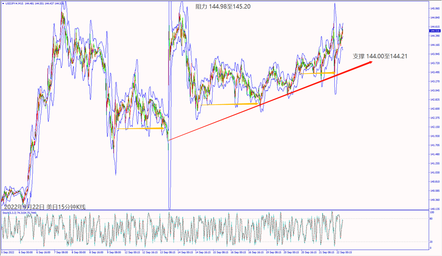 今天(22日)清晨美联储宣布加息3码,点阵图预测今年至少再加息3码,亚洲市场买盘带动美元指数上涨约40个点再创20年新高。预期今天日本央行利率决议偏鸽,可能带动美日挑战波段新高。预期今天英国央行利率决议宣布加息50个基点,有望带动欧美和镑美上涨。