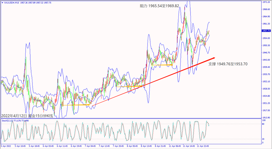 昨天(11日)新冠疫情和俄乌战争造成欧美股指大跌,推升黄金价格一度触及1970关口。但是市场预期第二季度美联储加息利好美元,也让黄金反转下跌约30美元。预期今天(12日)美国公布CPI数据利好美元指数大涨,黄金一旦跌破小时布林带中轨1952.34美元,建议可短空操作。