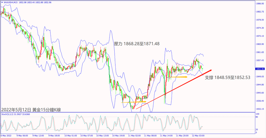 昨天(11日)美國公佈通脹數據下降引發市場預測經濟衰退,美股再度出現大跌,避險資金推升黃金漲至1850關口上方整理。預期今天(12日)美國公佈經濟數據大都不佳,一旦美元和美股齊跌,推升黃金價格突破5日均線1855美元,建議可短多操作。