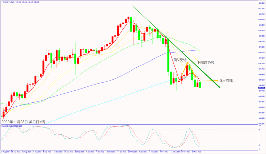 日級別線圖,出現倒V反轉,5日均線反壓,可能下探波段新低。