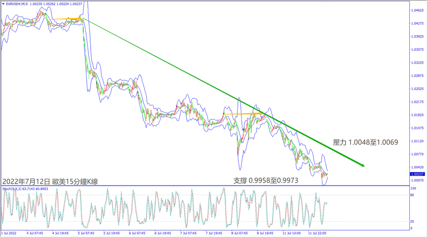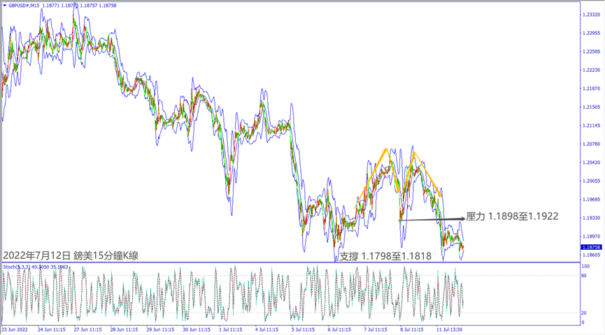 預期今天(12日)歐佩克月度能源報告調降石油需求和價格,可能利淡油價和加元,美加若守住5日均線,有望挑戰波段新高。預期今天歐元區公佈經濟景氣指數不佳,歐美沖不過小時布林帶上軌線1.0045,建議可短空操作。預期今天英國央行行長貝利對能源危機衝擊經濟提出示警,鎊美沖不過小時布林帶上軌線1.1909,建議可短空操作。