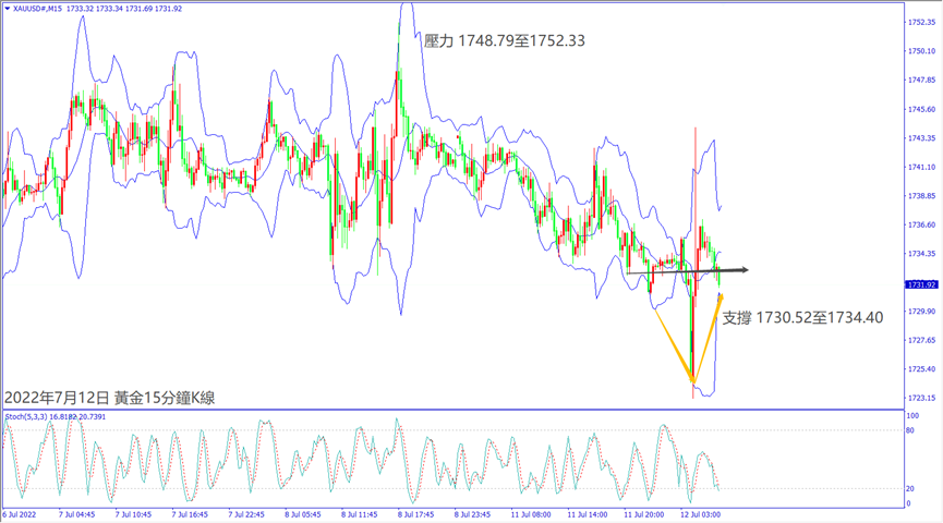 今天(12日)亞洲市場回補美元帶動指數大漲,一度造成黃金價格急跌至1723美元。隨著美元指數高點回落後,市場買盤回補一度帶動黃金價格急漲約20美元。預期今天歐洲經濟數據不佳,以及歐佩克看淡經濟調降石油需求可能造成歐美股指大跌,黃金價格一旦突破5日均線1737美元,建議可短多操作。