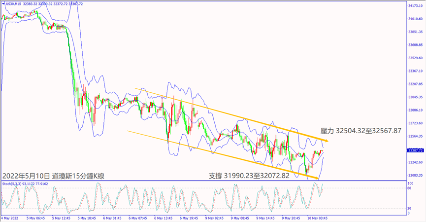 昨天(9日)美國經濟數據利淡,以及美聯儲預期多次加息,造成道瓊斯和納指再創波段新低。預期今天(10日)歐元區公佈經濟數據利好,德指沖不過小時布林帶上軌線13,476,建議可偏空操作。預期今天美國財長對經濟增長提出示警,道瓊斯沖不過小時布林帶上軌線32,485,建議可偏空操作。