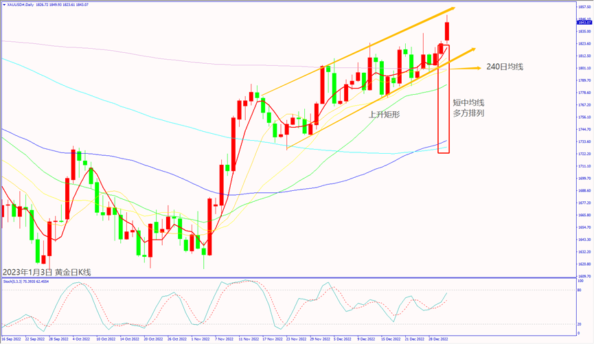 日級別線圖,上升矩形多方走勢,守住240日均線,有望持續上漲。