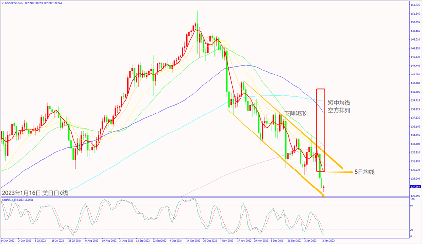 日級別線圖,出現下降矩形空方走勢,5日均線沖不過,可能下探波段新低。