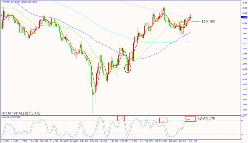 日級別線圖,連續上漲KD多方過熱,守住30日均線,可能延續漲勢。