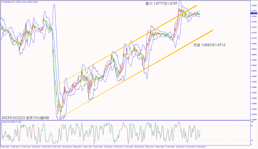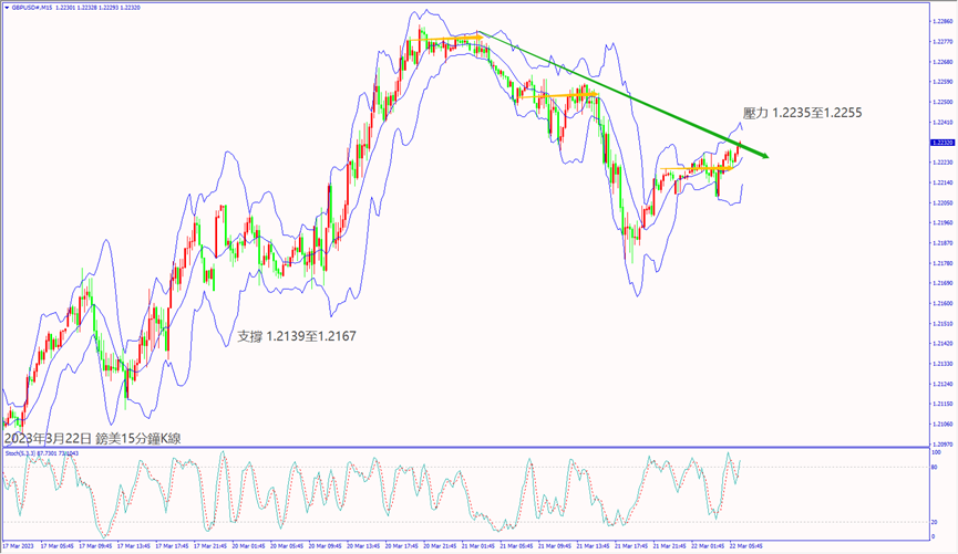 昨天(21日)市場擔憂瑞信AT1債券恐造成更多企業虧損,利淡歐美和鎊美出現下跌。英國首相發言人表示脫歐協議繼續敦促立法者支持溫莎框架,利淡鎊美擴大下跌105個點。歐元區公佈經濟景氣指數不佳,但是多位歐洲央行官員預期持續加息抑制通脹,利好歐美上漲約85個點,帶動鎊美止跌反彈,也讓美元指數下跌約45個點,帶動美加漲約45個點。晚間美國公佈經濟數據利好美元上漲,以及加拿大CPI下降,帶動美日和美加逆勢上漲逾90個點,也讓歐美出現回調。
