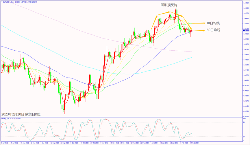 日級別線圖,圓形頂反轉,一旦跌破60日均線,可能延續跌勢。