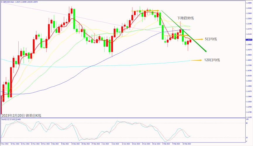 日級別線圖,近期處於盤跌,下降趨勢線沖不過,可能下看120日均線。