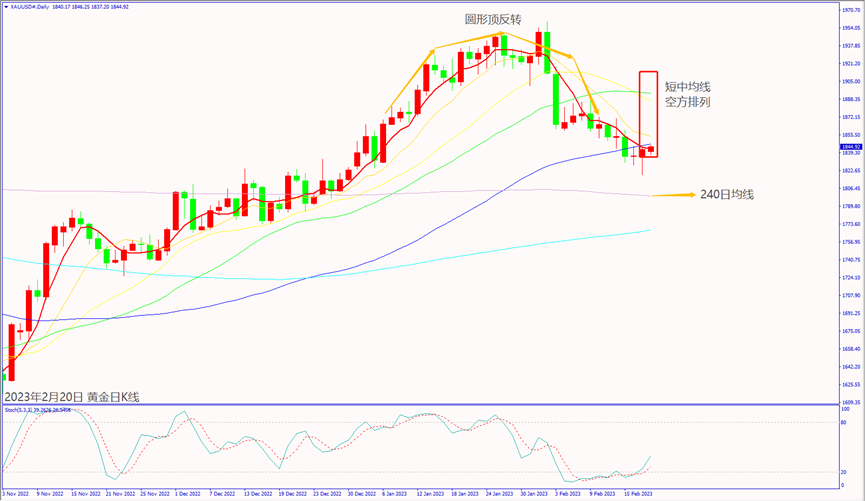 預期本周歐元區公佈經濟資料大都不佳利淡歐元和利好美元,以及預期本週四(23日)清晨美聯儲貨幣紀要政策重申維持加息,可能造成美元指數再創波段新高,黃金價格一旦跌破1840.00關口,不排除回測1800美元。若本周歐元區公佈經濟資料和CPI攀升利好歐元和利淡美元,可能造成黃金價格出現反彈。